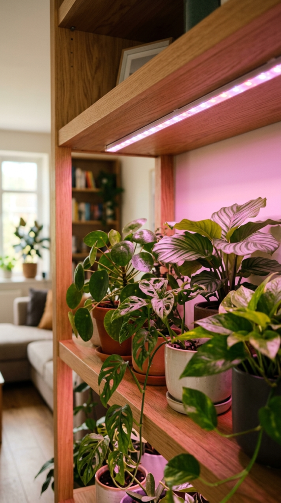 If your dream shelf location genuinely doesn’t have adequate natural light — don’t panic. The next section on grow light integration solves this completely and opens up literally any wall in your home as a viable plant display location.