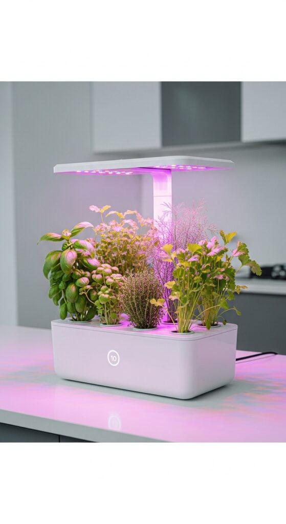 Brands like AeroGarden, Click & Grow, and Gardyn have made hydroponic kitchen gardening completely beginner-proof. You fill the reservoir with water, drop in the seed pods, plug it in, and set the timer. The built-in lights run automatically on a schedule, the system tells you when to add water, and herbs grow at two to three times the speed of soil-grown plants.