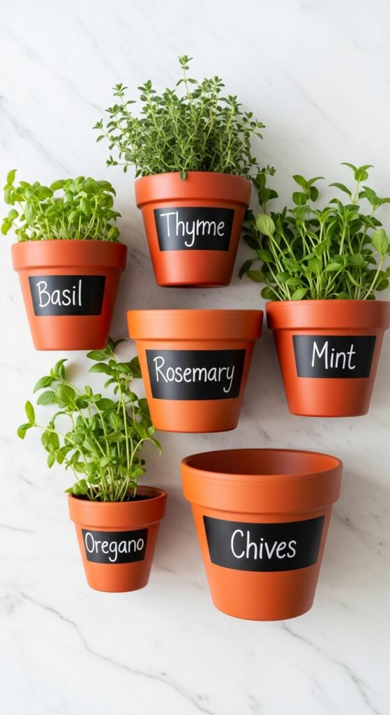 11. Chalkboard-Labeled Terracotta Herb Collection