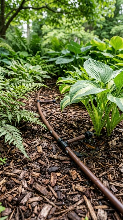 A basic soaker hose snaked through your shade bed and connected to a $15 timer from a hardware store is genuinely all you need for a stress-free watering setup. Set it, mostly forget it, adjust seasonally.