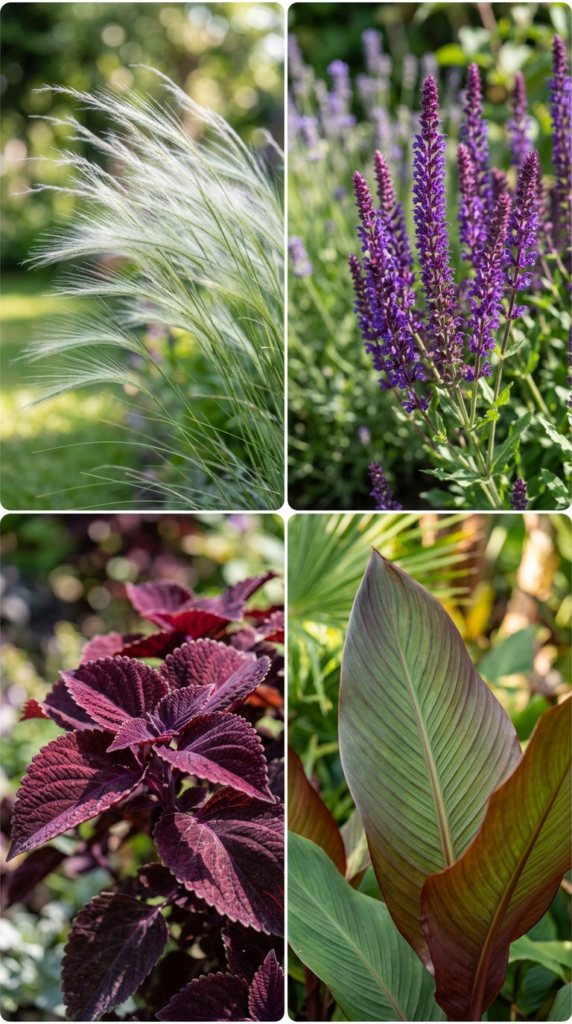 - Ornamental grasses (like purple fountain grass) — add incredible texture and movement