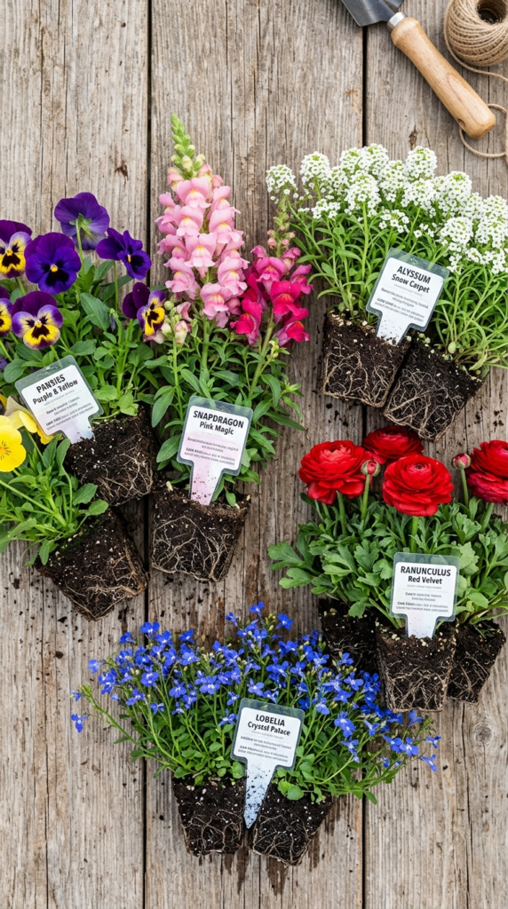 - Grow from seed — pansies, alyssum, and snapdragons are all easy from seed if you start 8–10 weeks before your last frost