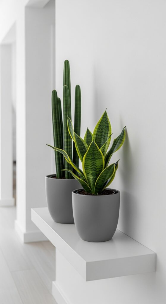 A well-placed snake plant in a great pot makes a hallway or dark corner look designed rather than neglected — it’s genuinely that powerful!