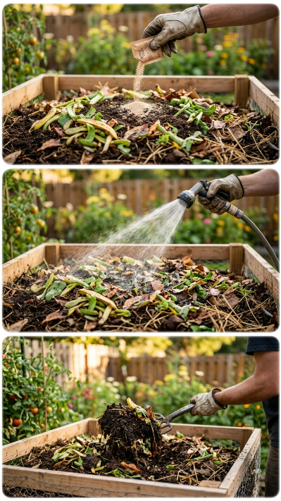 | Carbon-to-Nitrogen ratio | 25–30:1 (C:N) | Too high = slow pile; too low = smelly pile |