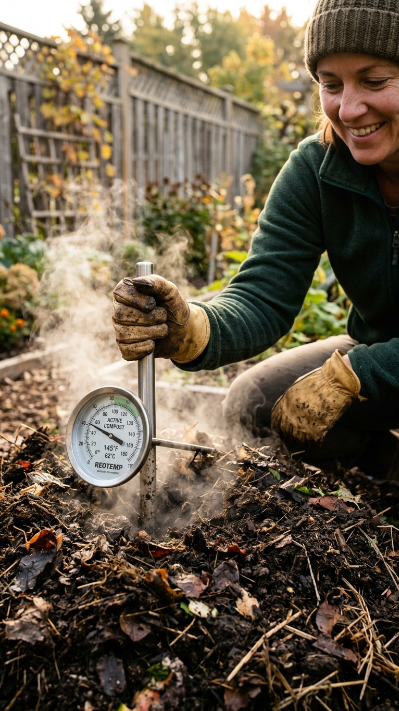 💡 Pro Tip: Invest $8–$15 in a long-stem compost thermometer — it’s the single most useful composting tool you can own, giving you objective data on pile performance and telling you exactly when to turn (temperature drops back below 110°F) and when your compost is finished (temperature stabilizes near ambient air temperature).