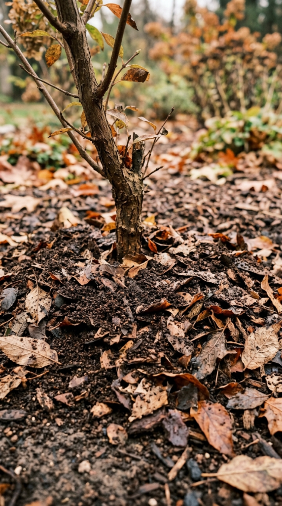 - ❌ Don’t: Pile directly against plant stems or crowns