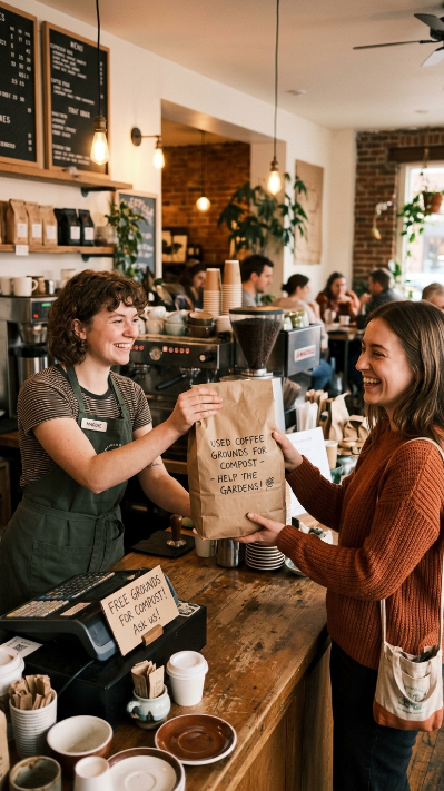 - Office kitchens and break rooms — workplaces with coffee machines often have grounds going to waste daily