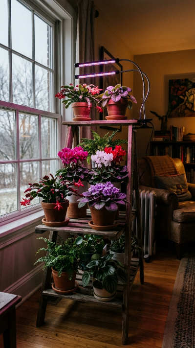💡 Grow lights don’t need to be expensive to be effective. A simple clip-on or standing LED grow light in the 5000–6500K color spectrum costs as little as $20–30 and can make a staggering difference to flowering houseplants through winter’s darkest weeks.