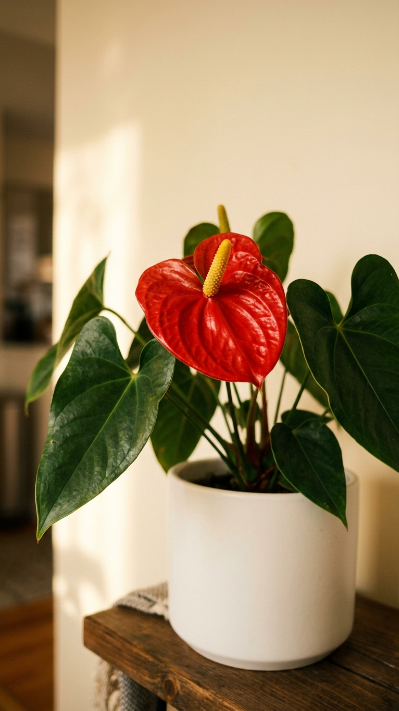 - Anthurium: prefers 65–80°F (18–27°C) — keep warm and away from drafts