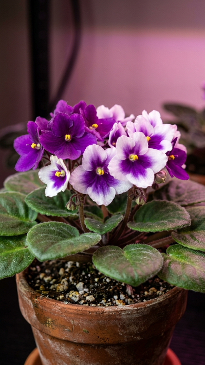 - African Violet: prefers 65–75°F (18–24°C) — consistent warmth, no cold windows
