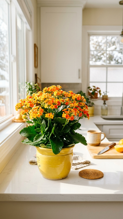 - Kalanchoe: prefers 60–85°F (15–29°C) — adaptable but hates freezing drafts